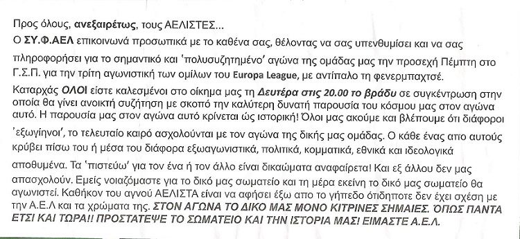 Ξεκάθαρο μήνυμα προς τον καθένα έδωσε χθες ο ΣΥ.Φ.ΑΕΛ.