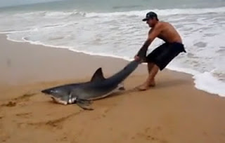 Άνδρας τραβάει Λευκό Καρχαρία πίσω στη θάλασσα με τα χέρια του [video]