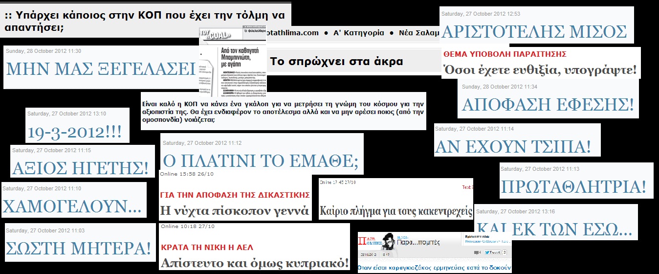 -Το έτερο τους ήμισυ η ιστοσελίδα σέντρα-γκολ αν και δεν έφτασε το μαγικό αριθμο των 12!!! κειμένων ( 5 κείμενα βρήκαμε) ήταν και αυτοί εξίσου αδίστακτοι αφού τα έχωσαν σε όλους για την απόφαση, άφησαν υπονοούμενα κτλ.