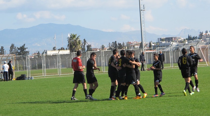 Οι γηπεδούχοι άνοιξαν το σκορ στο 10ο λεπτό μετά από γρήγορη αντεπίθεση. Η ομάδα μας ισοφάρισε στο 15’ με κεφαλιά του Αλέξανδρου Μιχαήλ ενώ δέκα λεπτά αργότερα στο 25’ ο Στυλιανός Παντελή έβαλε την ομάδα μας σε θέση οδηγού.