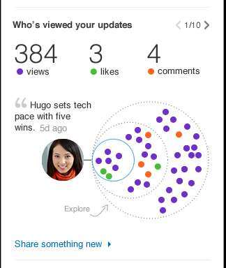 Η Αρχική Σελίδα σου στο LinkedIn έχει αποκτήσει ή θα αποκτήσει σύντομα δύο νέες και χρήσιμες λειτουργίες στο δεξί μέρος της. Η πρώτη αφορά στατιστικά του περιεχομένου του οποίου διαμοιράζεσαι στο επαγγελματικό Κοινωνικό Δίκτυο και η δεύτερη αφορά λογαριασμούς τους οποίους έχεις επισκεφτεί με το προφίλ σου.