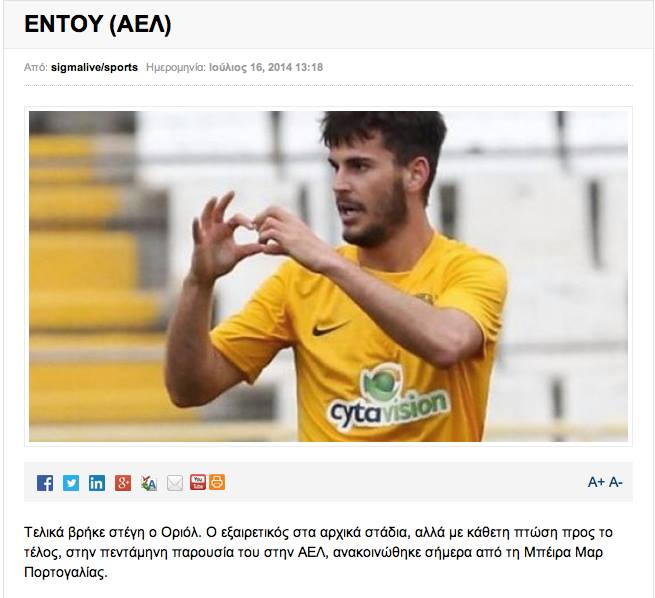 Για να πάρουμε τα πράγματα από την αρχή, σύμφωνα με τη γνωστή ειδησεογραφική ιστοσελίδα Sigmalive ποδοσφαιριστής της ομάδας μας ανακοινώθηκε από την Πορτογαλική Beira-Mar. (Δείτε την φωτογραφία πιο κάτω)