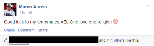 Ευχές Μάρκο Αιρόσα στους συμπαίχτες του και “Οne love one religion”