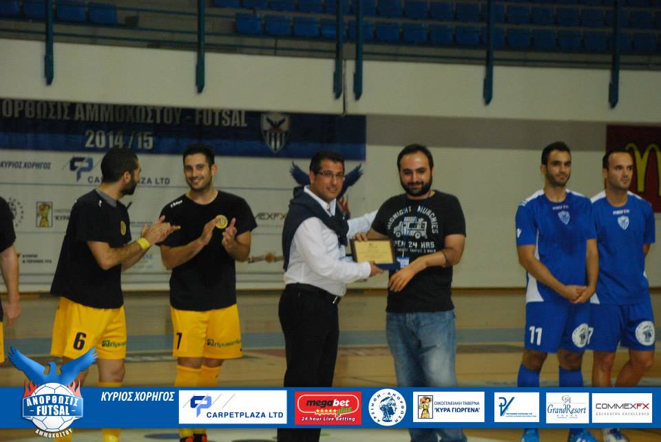 Νοιώσαμε την ανάγκη να τιμήσουμε με αναμνηστική πλακέτα την ομάδα της Ανόρθωσις πριν την έναρξη του αγώνα για την πρώτη συμμετοχή της  στην Α’ κατηγορία γιατί πιστεύουμε ότι γίνονται τεράστιες προσπάθειες από τον υπεύθυνο του τμήματος κ. Ανδρέα Παπαλλή και τους συνεργάτες του για την προώθηση και ανάπτυξη του αθλήματός και τους συγχαίρουμε πραγματικά γι’ αυτό.