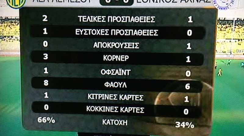 Τα στατιστικά του αγώνα όπως τα κατέγραψε η τηλεοπτική πλατφόρμα της cytavision.