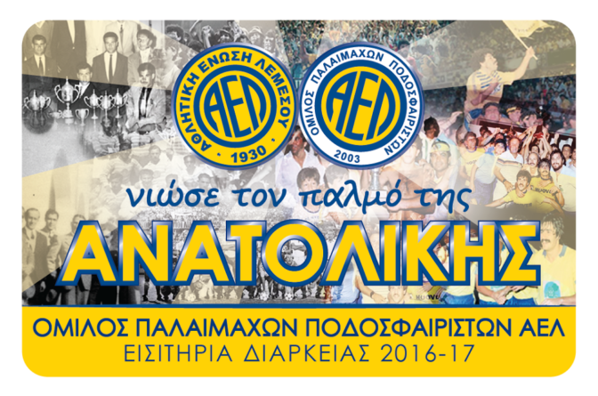 Ο ΟΜΙΛΟΣ ΠΑΛΑΙΜΑΧΩΝ ΠΟΔΟΣΦΑΙΡΙΣΤΩΝ ΑΕΛ ΣΕ ΣΥΝΕΡΓΑΣΙΑ ΜΕ ΤΗΝ ΑΕΛ ΠΟΔΟΣΦΑΙΡΟ ΔΙΑΘΕΤΕΙ ΠΡΟΣ ΟΛΑ ΤΑ ΕΝΕΡΓΑ ΜΕΛΗ ΤΟΥ ΕΙΣΙΤΗΡΙΟ ΔΙΑΡΚΕΙΑΣ 2016-2017 ΣΤΗΝ ΕΙΔΙΚΗ ΤΙΜΗ ΤΩΝ 170 ΕΥΡΩ ΣΥΜΠΕΡΙΛΑΜΒΑΝΟΜΕΝΗΣ ΚΑΙ ΤΗΣ ΚΑΡΤΑΣ ΤΟΥ ΠΡΟΓΡΑΜΜΑΤΟΣ – Η ΑΕΛ ΕΙΣΑΙ ΕΣΥ – Η ΟΠΟΙΑ ΣΤΟΙΧΙΖΕΙ 10 ΕΥΡΩ. ΕΠΙΘΥΜΟΥΜΕ ΟΠΩΣ ΟΛΑ ΤΑ ΜΕΛΗ ΜΑΣ ΣΤΗΡΙΞΟΥΝ ΑΥΤΗ ΤΗΝ ΠΡΟΣΠΑΘΕΙΑ ΓΙΑ ΜΙΑ ΠΙΟ ΔΥΝΑΤΗ ΚΑΙ ΕΝΩΜΕΝΗ ΑΕΛ ΤΗΝ ΝΕΑ ΧΡΟΝΙΑ.