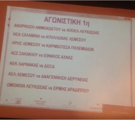 Έγινε σήμερα η κλήρωση για τις αγωνιστικές της νέας περιόδου του νέου πρωταθλήματος Cyta 2016-17. Η ομάδα μας κληρώθηκε μετά από πολλά χρόνια να παίξει την πρώτη αγωνιστική στο γήπεδο της, με την Αναγέννηση Δερύνειας.