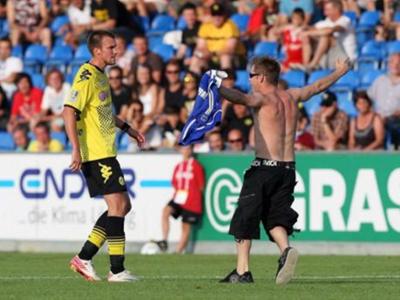Το καλοκαίρι δεν σημαίνει και… άδεια για τους «κάφρους» των γηπέδων. Η «αιώνια» κόντρα της Σάλκε με τη Ντόρτμουντ έκανε την εμφάνισή της σε ένα κατά τα άλλα ήσυχο φιλικό ματς. Οι πρωταθλητές αντιμετώπιζαν στην Αυστρία την Πολόνια Βαρσοβίας (έχασαν με 2-1) και λίγο πριν το τέλος, ένας οπαδός των «βασιλικών μπλε» εισέβαλε στον αγωνιστικό χώρο. Κρατούσε μία φανέλα της Σάλκε (με το όνομα του Ραφίνια που πλέον ανήκει στην Μπάγερν) και πήγε να πικάρει τον Κέβιν Γκρόσκροϊτς. Ο 22χρονος μέσος της Μπορούσια ήταν εμφανώς οργισμένος, αλλά κατάφερε να συγκρατηθεί μέχρι ο εισβολέας να απομακρυνθεί από το γήπεδο.